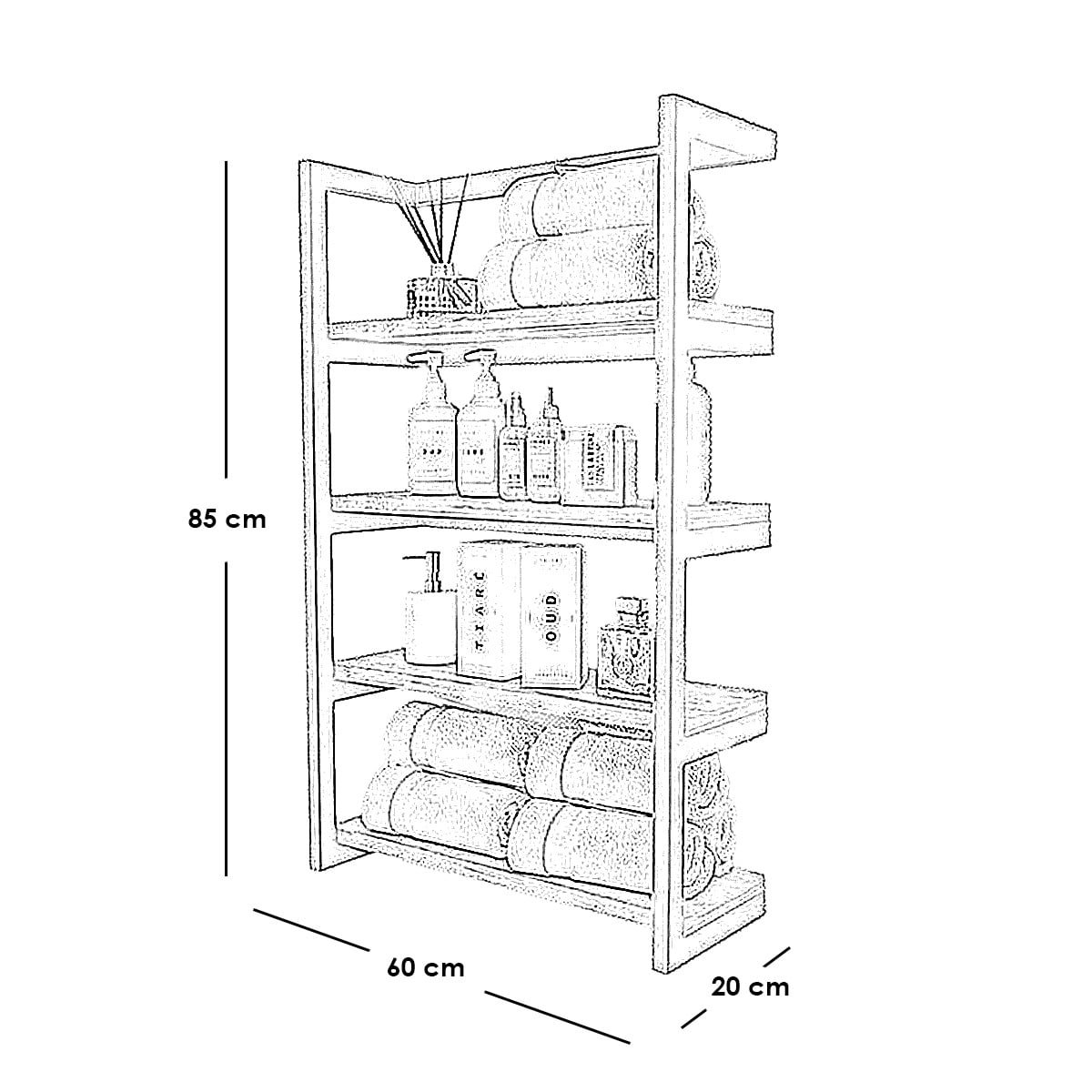 وحدة تخزين للحمام حديد و ام دي اف أسود – 60×20×85 سم