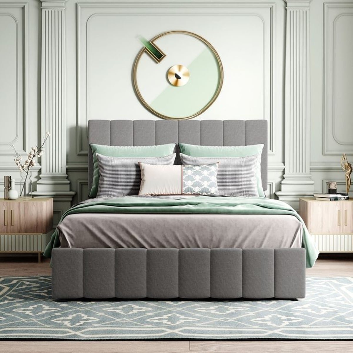 سرير فردي خشب موسكي و كتان كويا 120×100×200 سم – رمادي