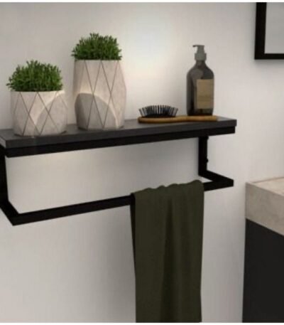 رف لديكور الحمام حديد وام دي اف اسود – 50×15×20 سم