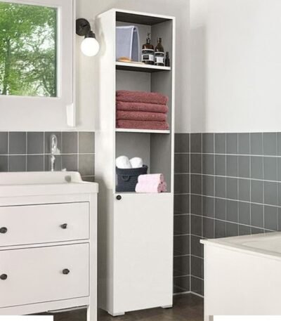 وحدة تخزين حمام خشب ام دي اف أبيض – 30 × 40 × 200 سم